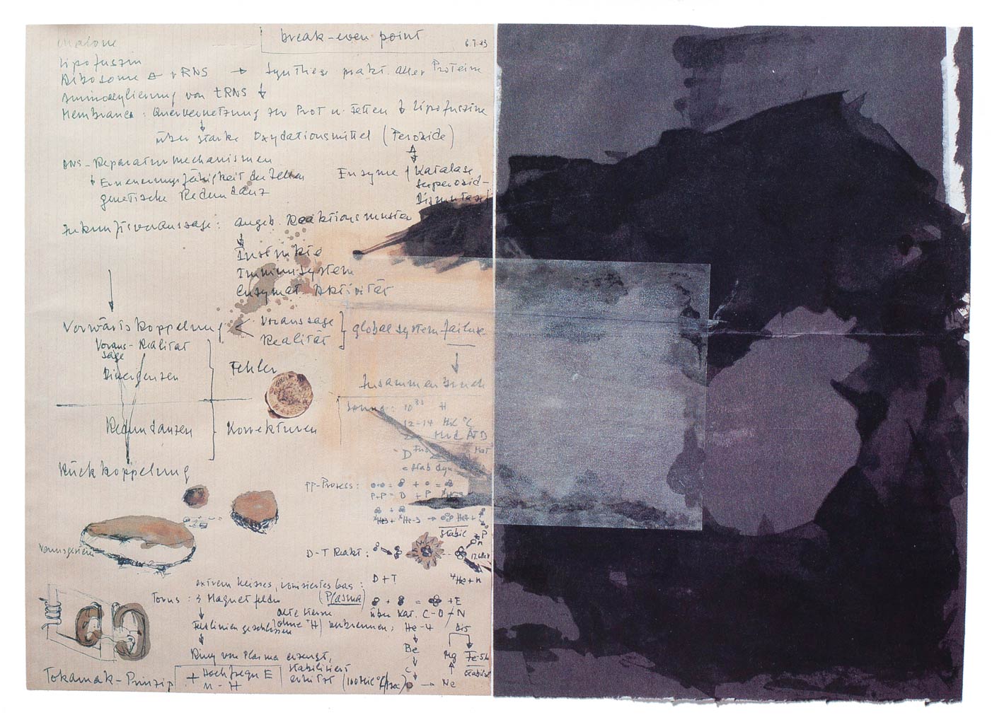 Willy Reber hat dafür mit seinen seismografischen Bleistiftzeichnungen und seinen die Bruchstellen befragenden Collagen einen gültigen Ausdruck gefunden, eine inhärente, wenn auch kryptische Bildsprache: eine den Vorstössen in die Molekularbiologie und Quantenphysik adäquate Bildgestalt, die im verborgenen Corpus seines Archivs schlummert, mit diesem Band aber einen Sehschlitz öffnet in die Wunderwelt der Naturgesetze.